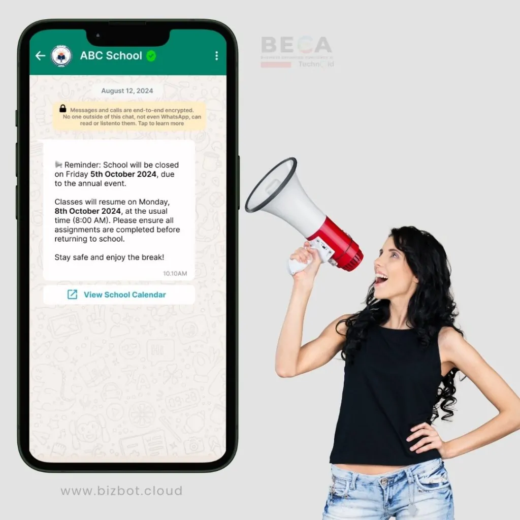 Unlike standard WhatsApp, BECA allows for automated messaging, which means educational institutions can schedule messages in advance. This ensures that important announcements reach parents and students at the right time without the need for manual intervention.