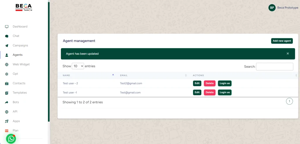 Add multiple agents to your BECA account, allowing different team members to manage and respond to messages. This feature ensures that communication is handled efficiently and effectively.