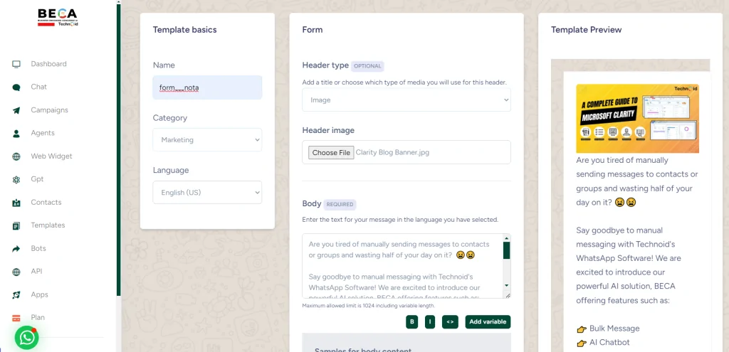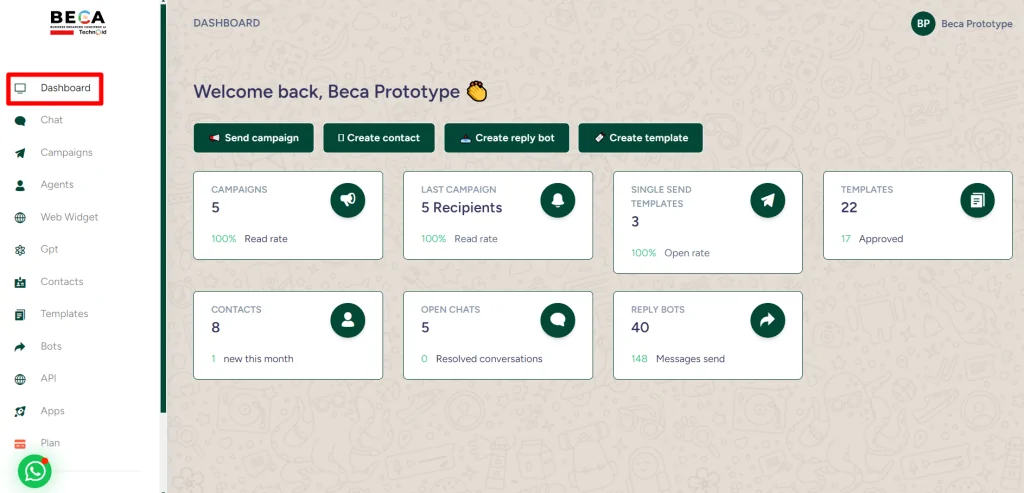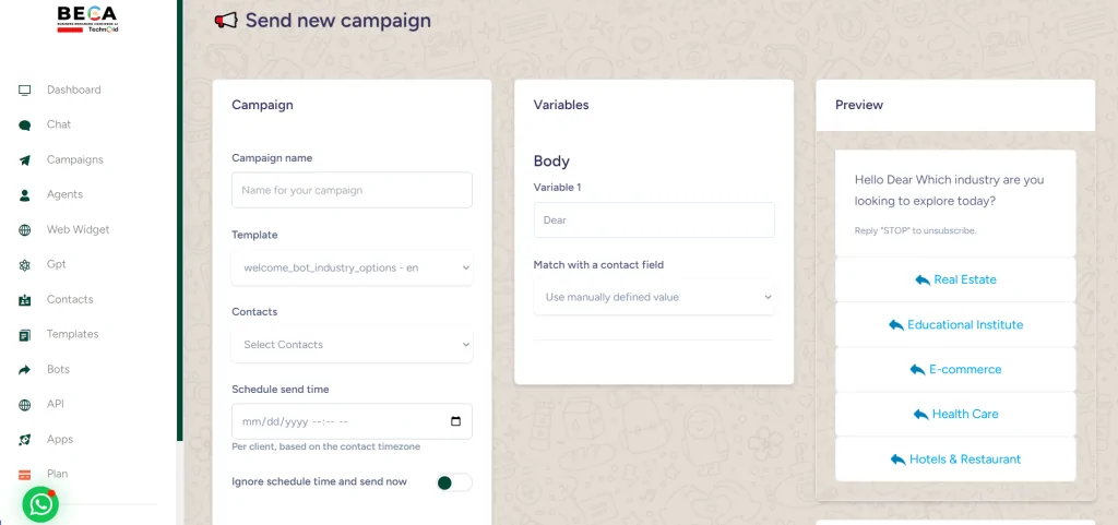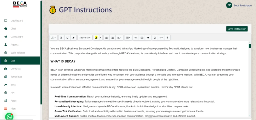 BECA (Business Enhanced Concierge AI), an advanced WhatsApp Marketing software powered by Technoid, designed to transform how businesses manage their communication. This comprehensive guide will walk you through BECA’s features, its user-friendly interface, and how it can elevate your communication strategy.
