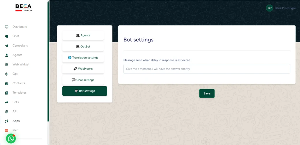 Even when triggers are not set, BECA’s GPT feature ensures responsive communication. When people reach out to you via WhatsApp, GPT responds intelligently based on how you have trained it, providing consistent and accurate interactions.